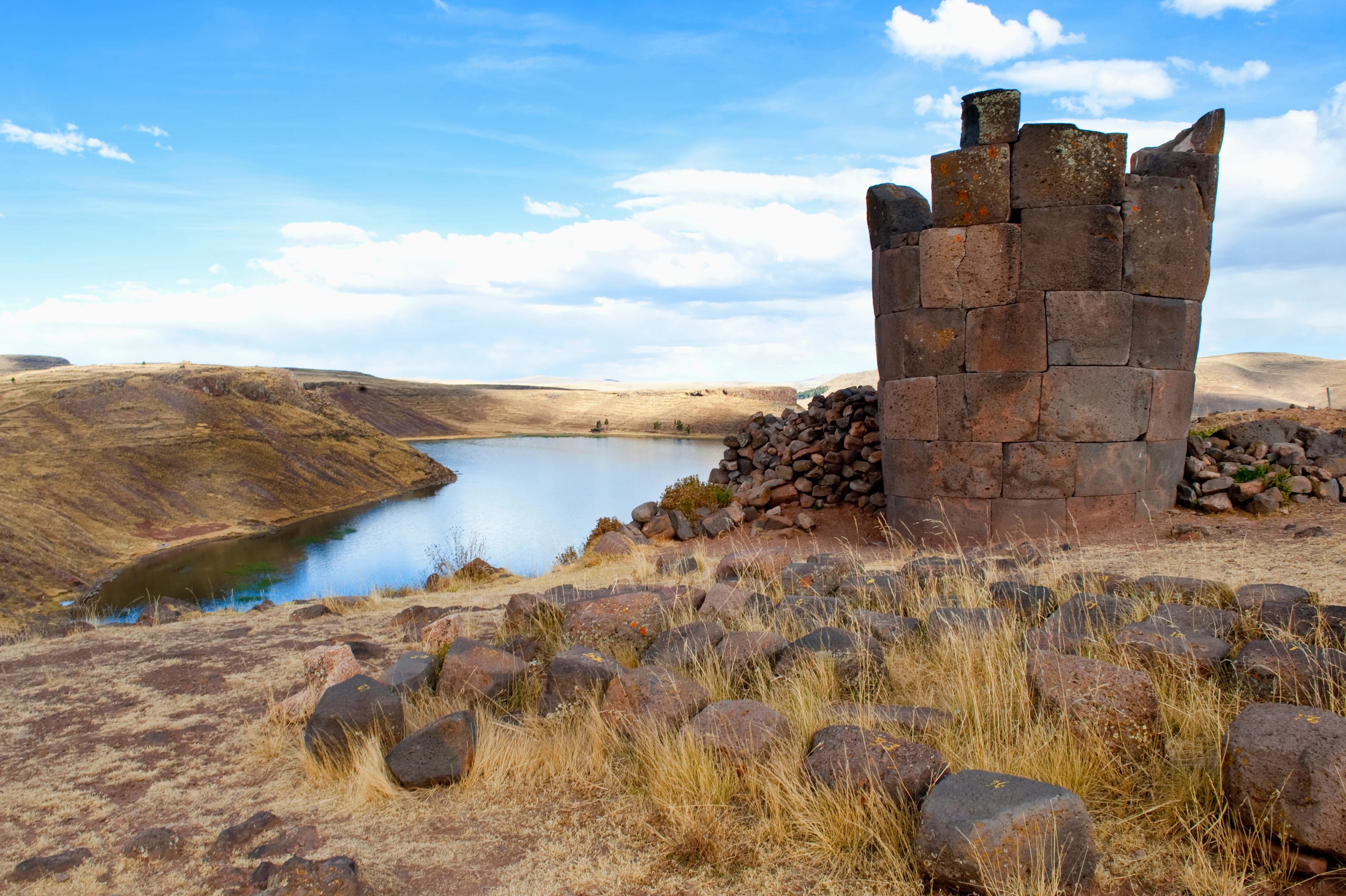 Vi tager afsked med Puno og sætter kurs mod lufthavnen, men undervejs stopper vi ved Sillustani-gravene, der er en kirkegård fra før Inkariget. Gravstederne, eller chullas, blev bygget i op til 12 meters højde og kunne rumme hele familier fra samfundets elite.