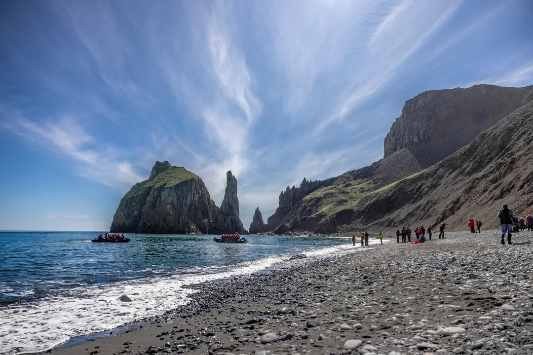 Heute sind die einzigen Bewohner der Insel die vielen Vögel, darunter Tausende von Papageientauchern, Trottellummen und Kormoranen. Wenn Sie Glück haben, können Sie bei der Anlandung inmitten der Natur den seltenen Beringschneeammer sehen, der fast ausschließlich hier brütet. Auch der ungewöhnliche Warnruf der Alaska-Wühlmaus, der dem Tier den englischen Namen „singende Wühlmaus“ eingebracht hat, ist häufig zu hören – also spitzen Sie die Ohren.