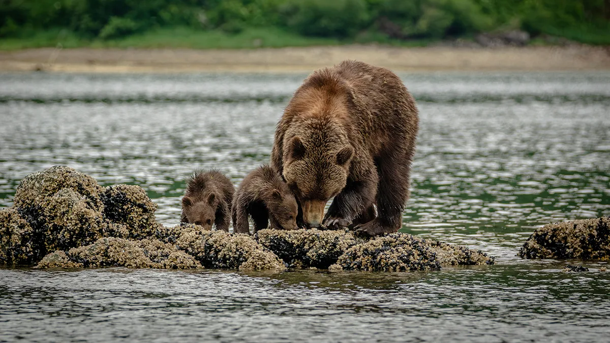 We’ll safely scout for bears from the deck or in our small expedition boats. They might be foraging for berries, digging for clams or catching fish in the stream.