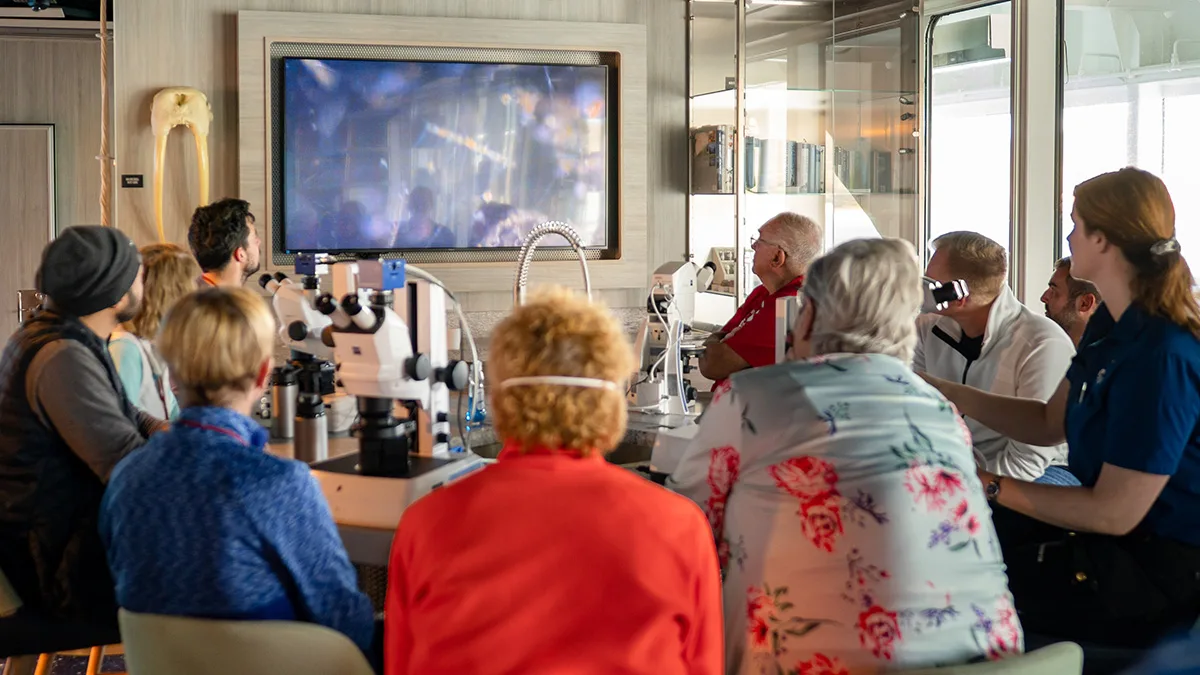 Members of the Expedition Team will start their lecture series on topics like oceanography, geology, ornithology, and history. Pop into the Science Center for hands-on presentations.