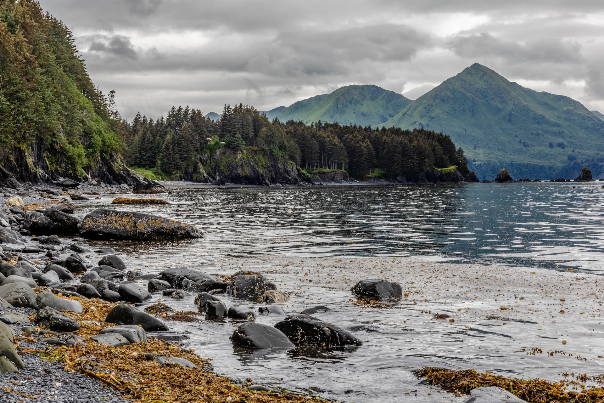 L’île Kodiak, surnommée « île d’émeraude », se caractérise par des forêts tempérées luxuriantes, des montagnes et un littoral accidenté.