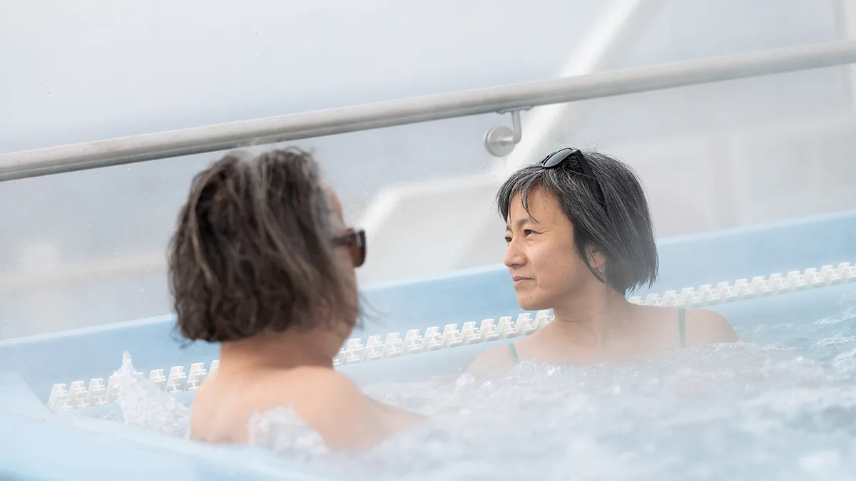 Offrez-vous un soin à l’espace bien-être et spa ou respirez l’air frais de la mer depuis les bains bouillonnants situés sur le pont. Retrouvez vos nouveaux amis de voyage au Salon & bar Explorer pour discuter de vos expériences autour d’un verre.