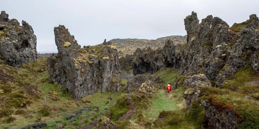 Vi stannar även till vid Lóndrangar där enorma basaltklippor skjuter upp ur havet. Dessutom kan du följa med på en kustvandring eller utforska grottorna under foten av glaciären Snæfellsjökull.