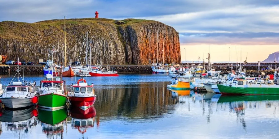 Det är som att tiden har stått still i Stykkishólmur i Breiðafjörður där de färgglada husen står i stark kontrast till bergen i bakgrunden. Utforska den lilla fiskebyn under en rundvandring som ingår i resan.